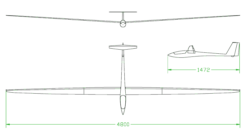 gewählten Maßstab von 5,5:1 ergibt eine Spannweite von