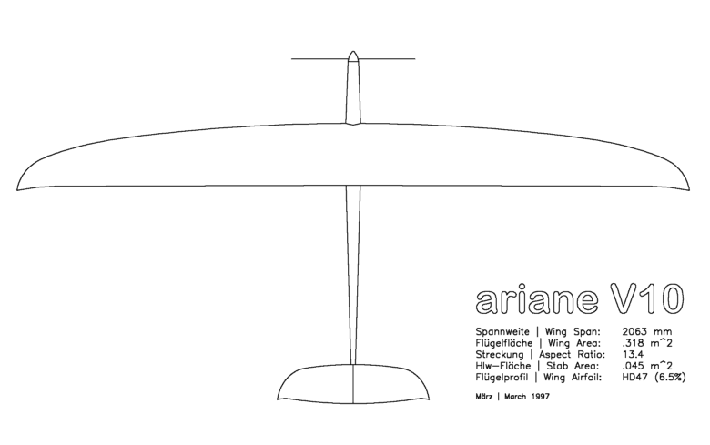 in der Spannweite (2,06 m) und Profiildicke (6,5 %).